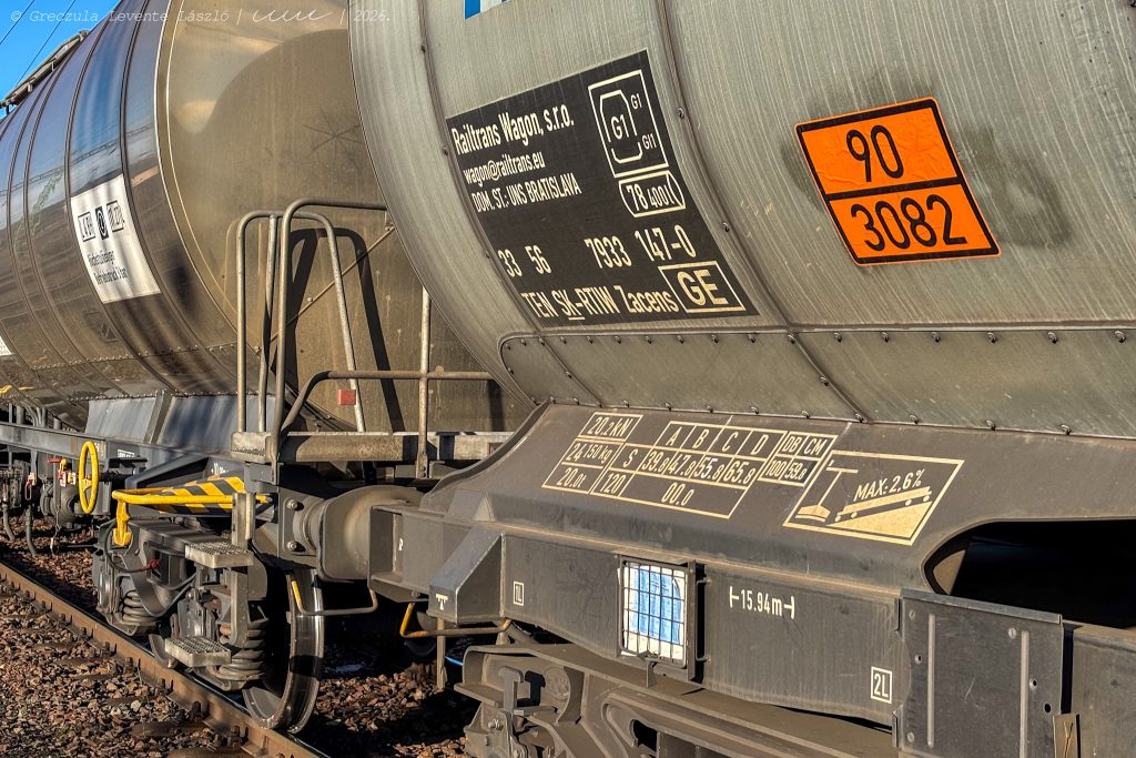 A RID természetesen a tartálykocsikra vonatkozóan is részletes követelménylistát[3] állít fel, többek között azokra az adatokra vonatkozóan is, amelyeket kötelezően fel kell rajtuk tüntetni. Az adatok egy része magához a kocsihoz kapcsolódik: az értelemszerűen megjelenő pályaszám mellett a tartálykocsi mindkét oldalán szerepelnie kell az üzembentartó jelzésének, a kocsi saját tömegének és a terhelési határoknak. Természetesen a tartányra vonatkozó adatoknak is meg kell jelenniük; ilyen az űrtartalom, a tartánykód, illetve egyes esetekben a szállított anyag helyes szállítási megnevezése is – erre később még visszatérünk. Fontos, hogy a tartány következő vizsgálatának időpontját is fel kell tüntetni a tartálykocsi oldalán, mivel a tartányok és a kocsik vizsgálati ciklusai eltérőek, előbbieket általában gyakrabban szükséges átvizsgálni. Ezek az adatok a kocsikat használó vasútvállalatok munkáját is segítik (például a kocsik meghibásodása esetén), de a töltésüket végzők számára is fontos információkat tartalmaznak. Ha egy kocsin csak hiányosan szerepelnek ezek az adatok, elméletileg nem vehet részt a forgalomban, és természetesen ugyanez a helyzet, ha vagy a tartány vagy a kocsi revíziója lejárt.